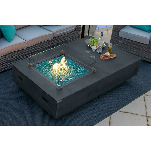 Shop a great selection of propane fire pit tables complete with lava rocks that will add optimal warmth during the cooler months. Available in wicker, iron, aluminum and lightweight concrete, these fire tables are the perfect centerpiece for sitting fireside under the night sky with your family and friends. Fire glass beads available with select units.